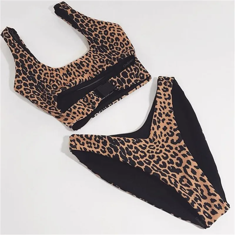 Женский купальник-бикини с пряжкой, Леопардовый купальник с пуш-ап, сексуальный купальник-бикини, новинка 2019