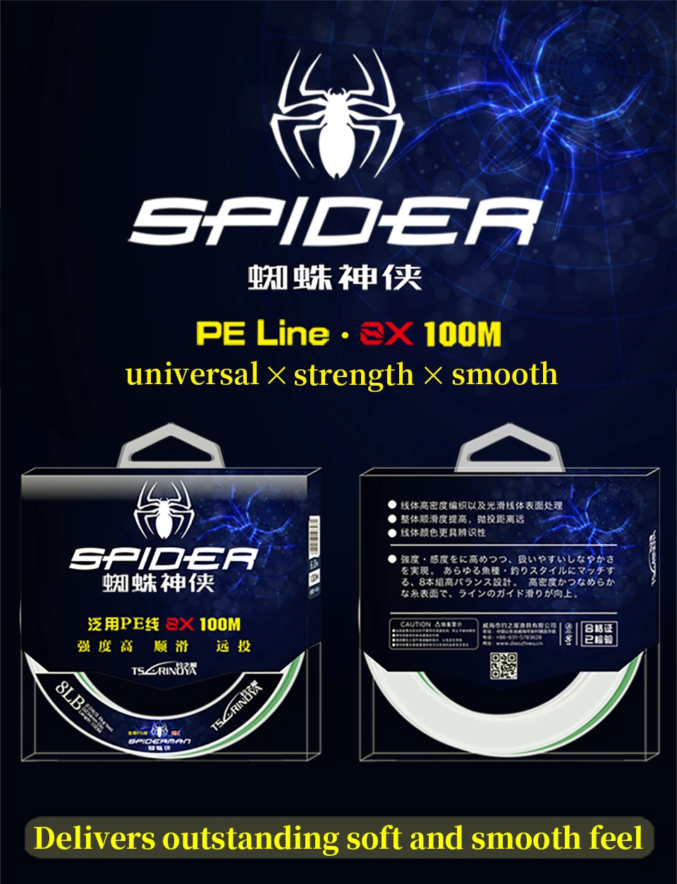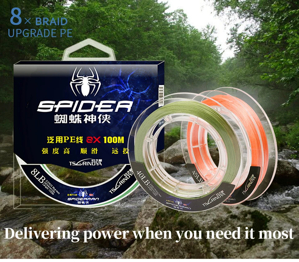 TSURINOYA PE рыболовная леска SPIDER 100 м 8 нитей плетеная многонитевая 12-80 фунтов супер прочная плетеная проволока