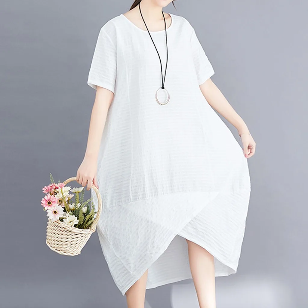Женское модное платье с коротким рукавом и круглым вырезом, повседневное однотонное платье