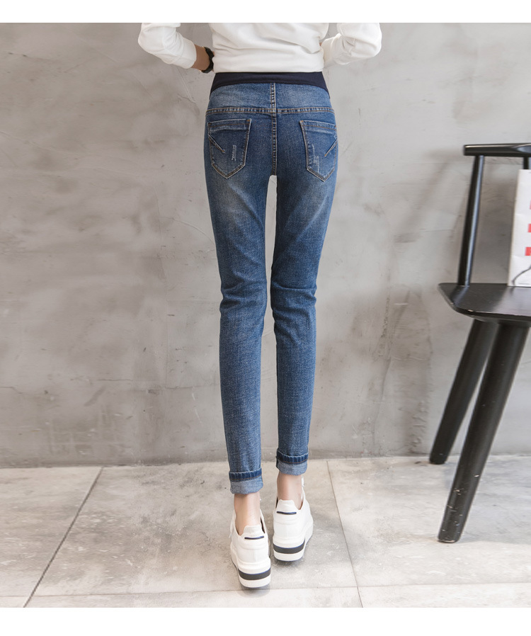 Потертые джинсы, обтягивающие джинсы для беременных, осень 2019, модные брюки-карандаш для живота, Одежда для беременных, брюки для беременных, QV816