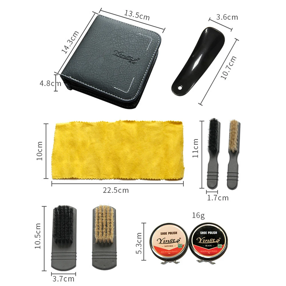 Описание: Все это в одном наборе для чистки обуви имеет все, что вам нужно для блеска и поддержания Вид вашей обуви. Идеально подходит для идеальной полировки обуви дома или в путешествии. Отличный подарок на день отца, дни рождения... Отлично подходит для сохранения школьной обуви ваших детей в наилучшем состоянии. Параметры: Цвет: как показано на картинке Размер: 143*135*48 мм Примечания: Из-за различных настроек монитора и освещения камеры могут быть небольшие различия в цвете. Спасибо за понимание! Пожалуйста, учитывайте погрешность в 1-2 мм из-за ручного измерения и убедитесь, что вы не возражаете перед заказом. Посылка включает в себя: 1 шт. * чехол на молнии 2 шт. * крем для обуви 1 шт. * полировальная ткань 1 шт. * пластиковый рожок для обуви 4 шт. * щетки для обуви