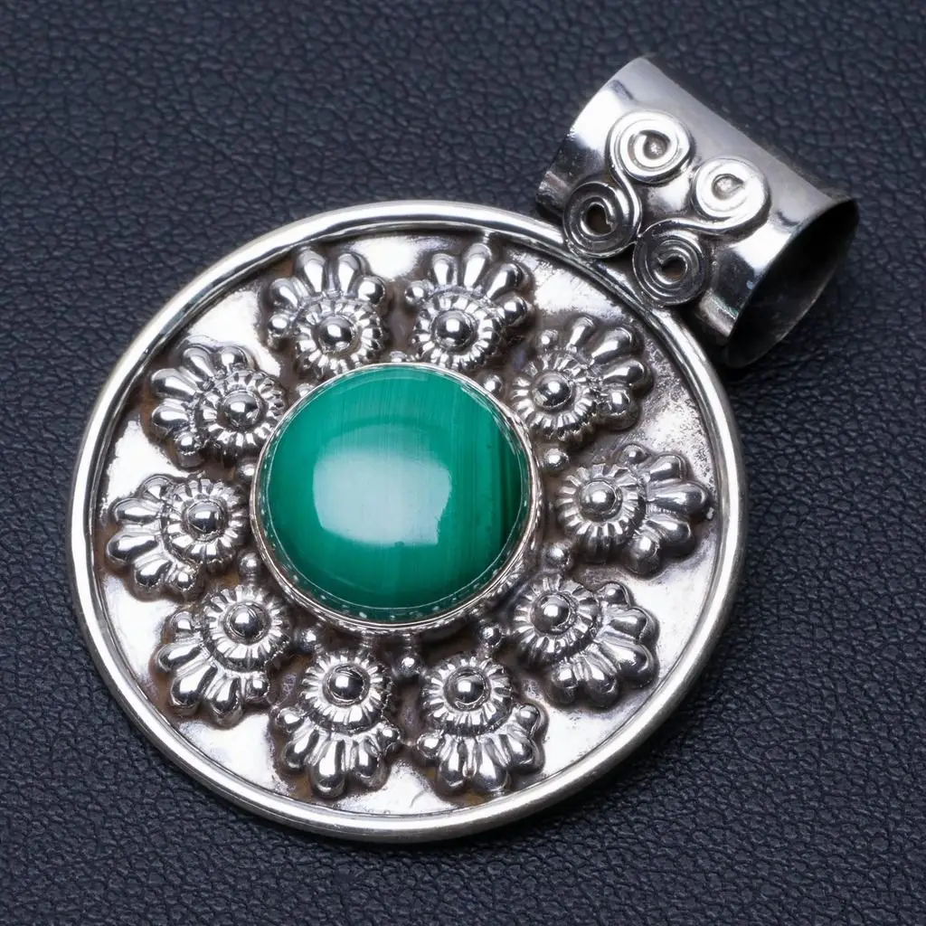 Натуральная Малахитовая подвеска в стиле панк из стерлингового серебра 925 пробы 1 1/2 дюйма; Q0082