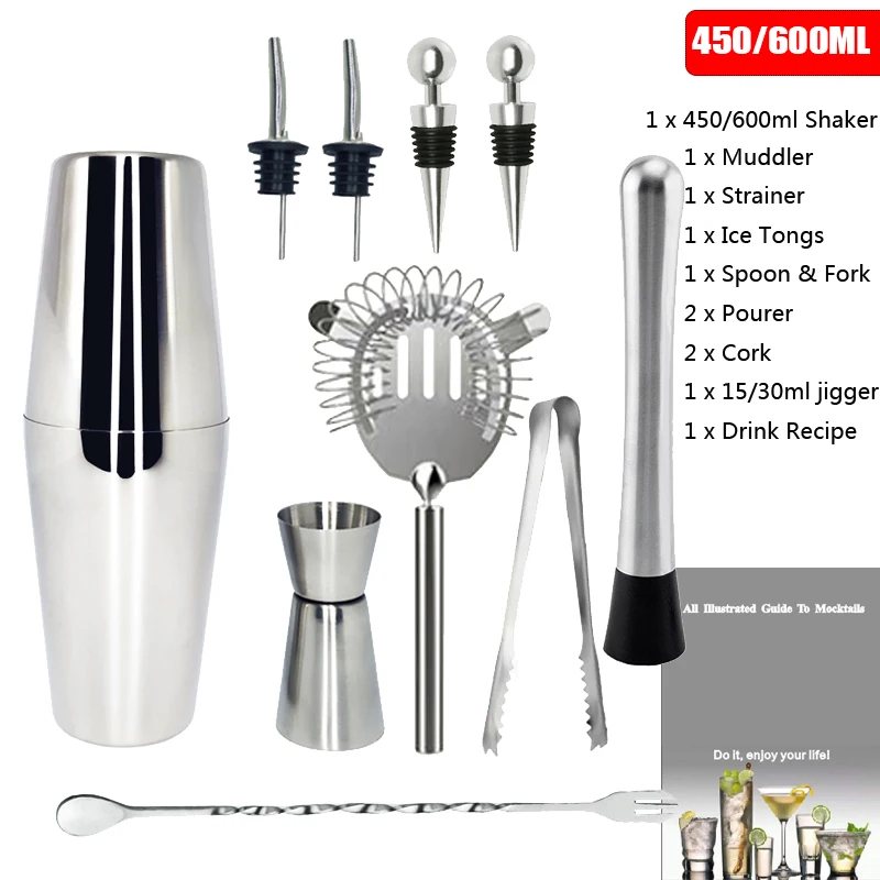 750/600 мл нержавеющая сталь 12 шт шейкер для коктейлей набор барный Набор Винных мартини Миксер для напитков шейкер Бостонского стиля для вечерние инструменты для бара