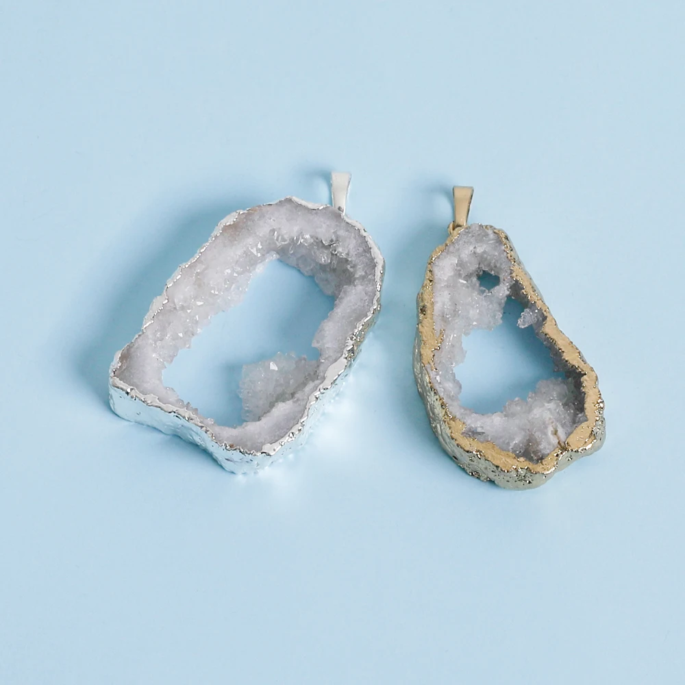 Натуральные бразильские Подвески золотистого цвета, открытые Агаты Geode Drusy Druzys для ожерелья, Женские Ювелирные изделия с цепочкой