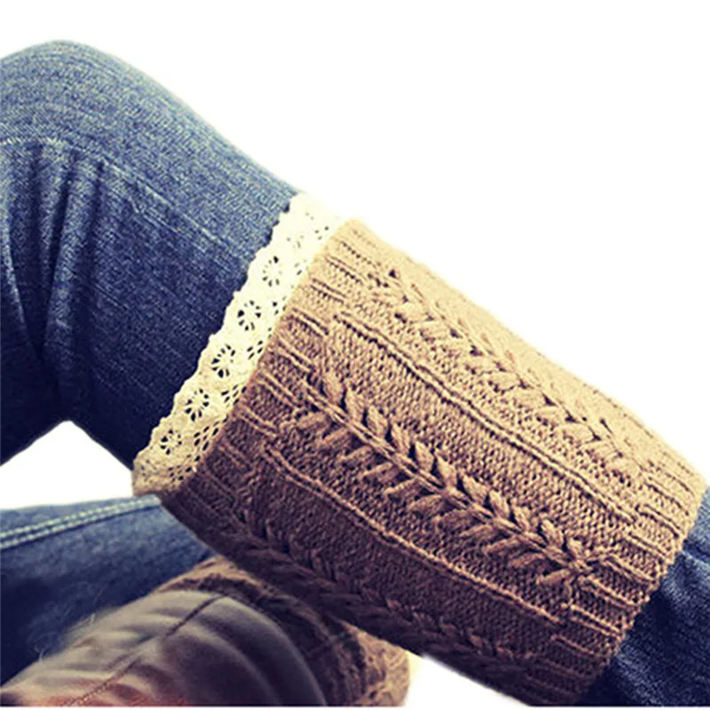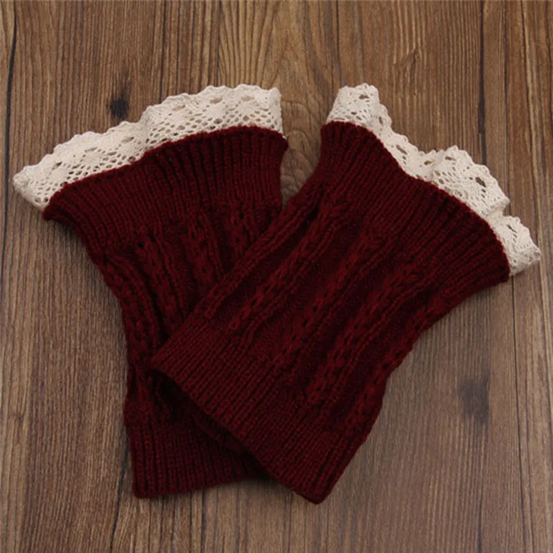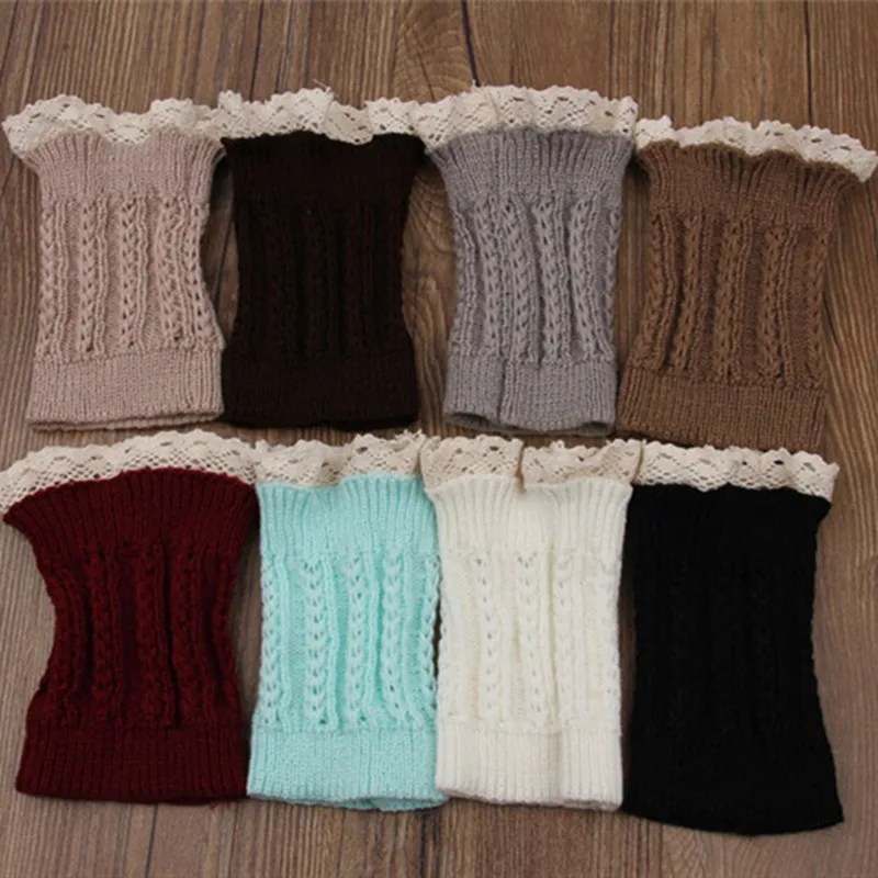 Зимние гетры для женщин и девочек, гетры с кружевной отделкой, гетры, гетры, вязаные гетры, короткие Вязаные Гетры
