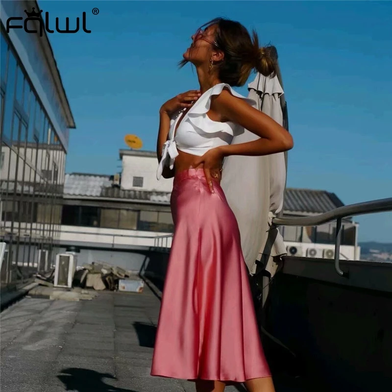 Женская атласная юбка с завышенной талией FQLWL, повседневная розовая юбка-макси с высокой талией, облегающая длинная Плиссированная юбка