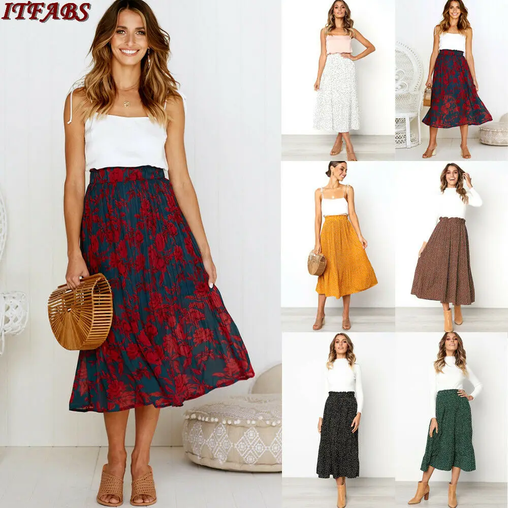 Женская длинная юбка эластичная с высокой талией цветочное Джерси Пляжное 2019 |