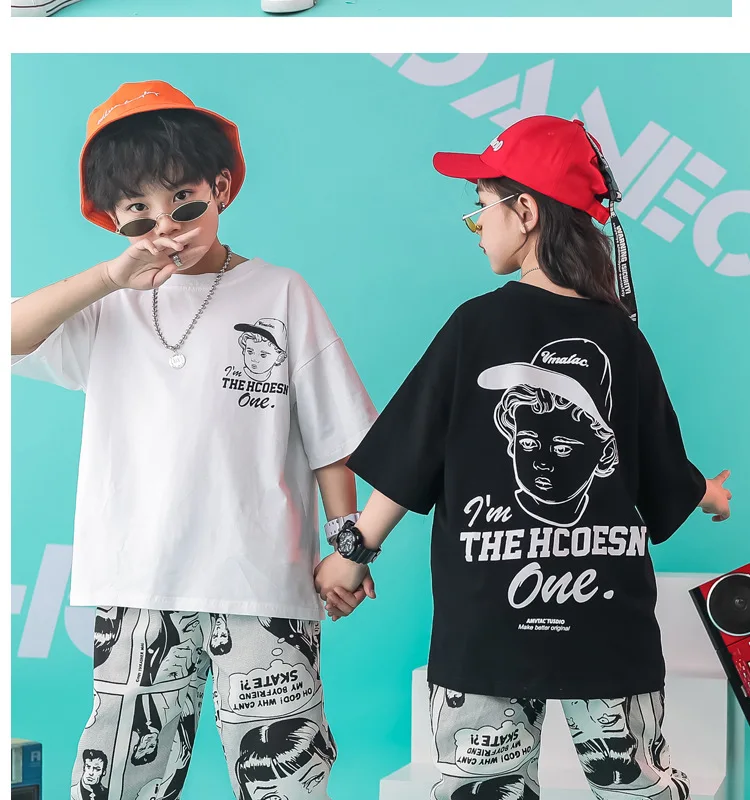 Детская крутая одежда в стиле хип-хоп футболка для бега большого размера топы, повседневные штаны с рисунком для девочек и мальчиков, танцевальный костюм, одежда для бальных танцевОбратите внимание, что топы и штаны продаются отдельноЕсли вам нужен 1 комплект, вы должны купить их обоих!Примечание по размеру: