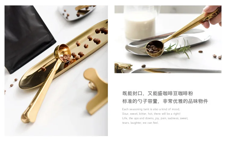 Два в одном, кофейная ложка из нержавеющей стали, герметичный зажим для кухни, золотые аксессуары, приёмник, украшение для кафе
