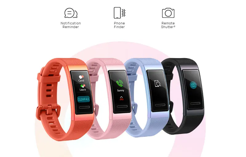 HUAWEI Band 3 показывает четкий и яркий цвет на 0,95 "AMOLED-дисплее. Сенсорный экран 2.5D позволяет вам полностью контролировать браслет плавно с помощью пальцев. Поддерживается HUAWEI TruSeen™3,0 прецизионная система мониторинга сердца, и в сочетании с инновационным дизайном датчика и интеллектуальным ии, ваш пульс может быть точно отслежен днем и ночью HUAWEI Band 3.