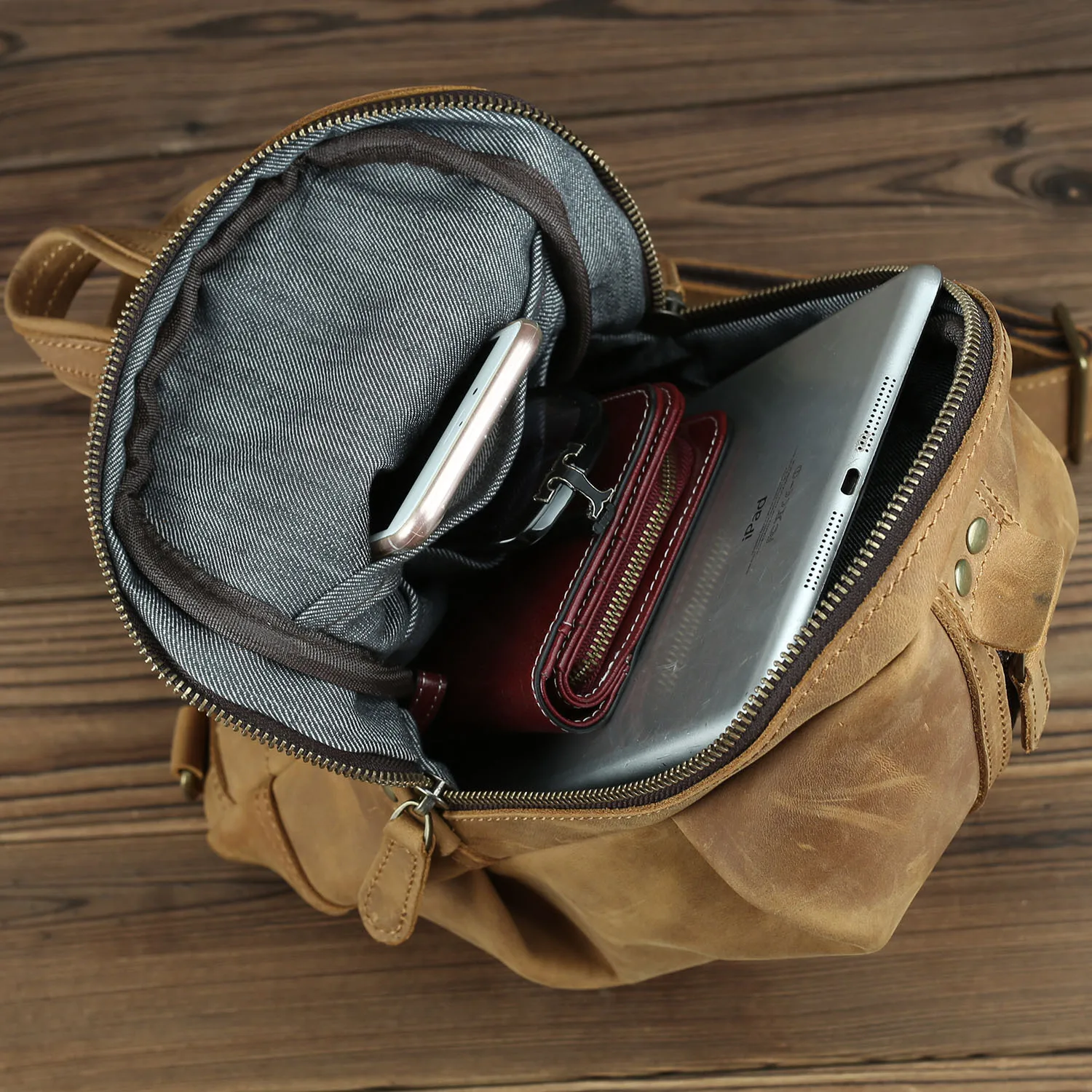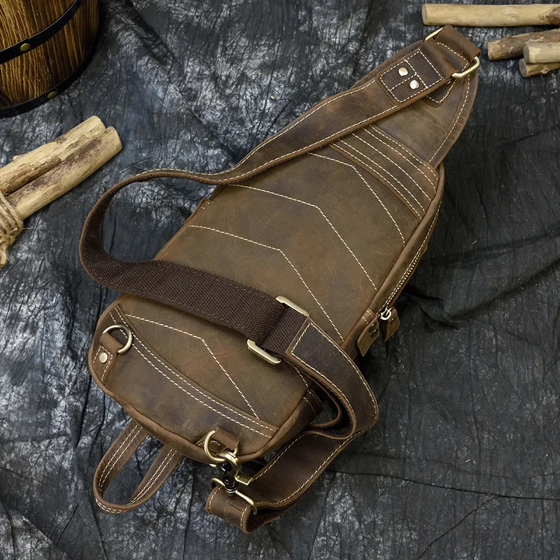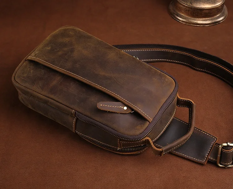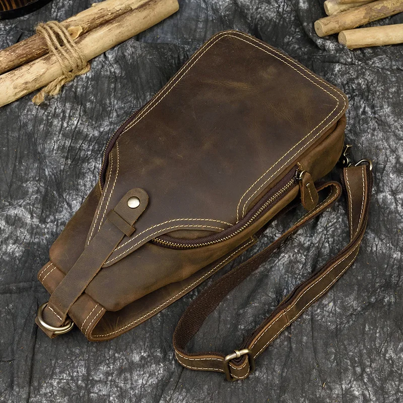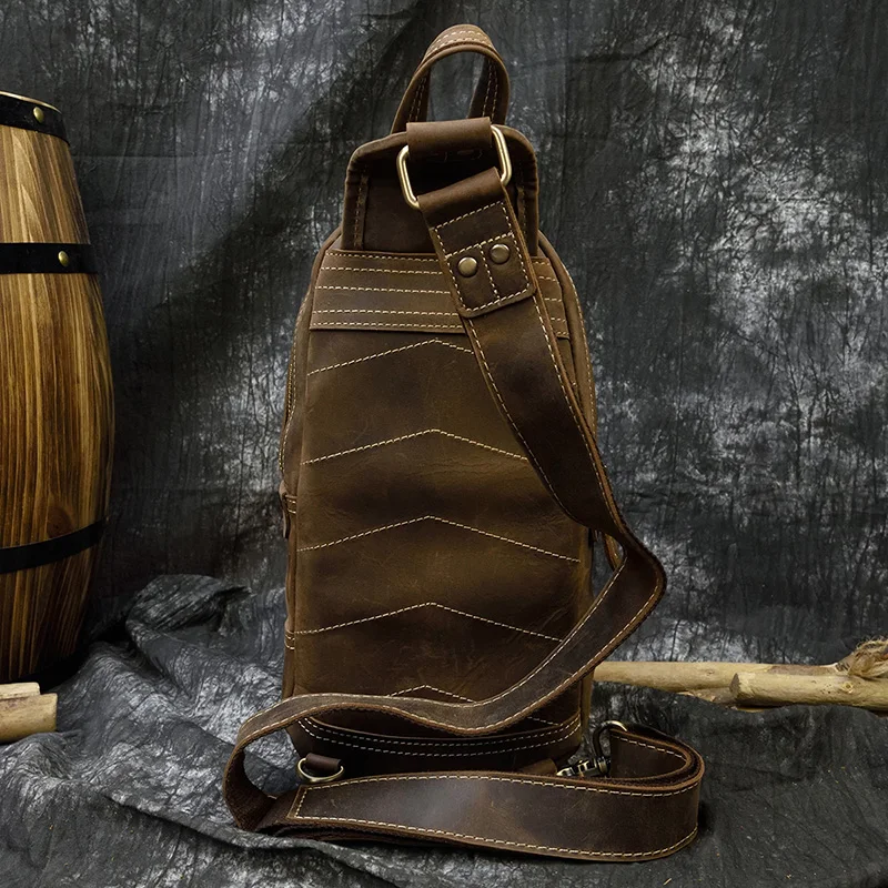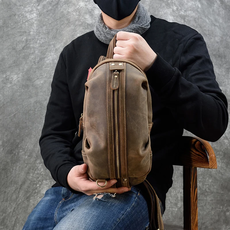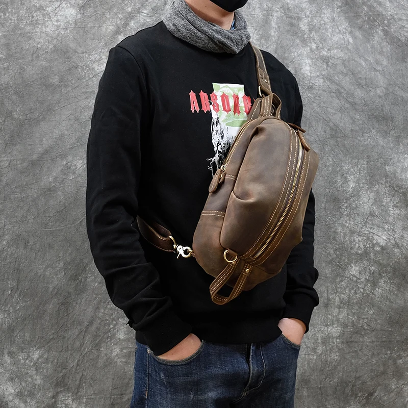 Материал: коровья кожа/натуральная кожа Размер: L17.5 * W6.5 * H32 (см) Вес: около 0,7 кг Дизайн: мужские кожаные нагрудные сумки Стиль: Повседневный Спортивный Стиль/европейский и американский стиль Пол: мужская кожаная нагрудная сумка Емкость: можно положить в мобильный телефон, сигарету, iPad, ручку, папиросную бумагу и т. д. Функция: можно использовать в качестве нагрудной сумки, сумки через плечо, сумки через плечо, многофункциональные al pack
