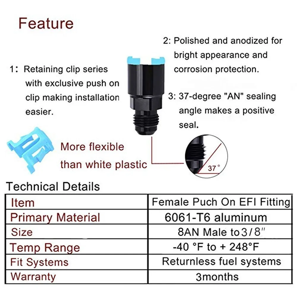 Размер фитинга: -8AN клеш x 3/8 дюйма. Шланг
