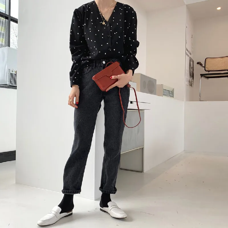 Джинсовая рубашка для женщин Свободная джинсовая куртка с длинным рукавом