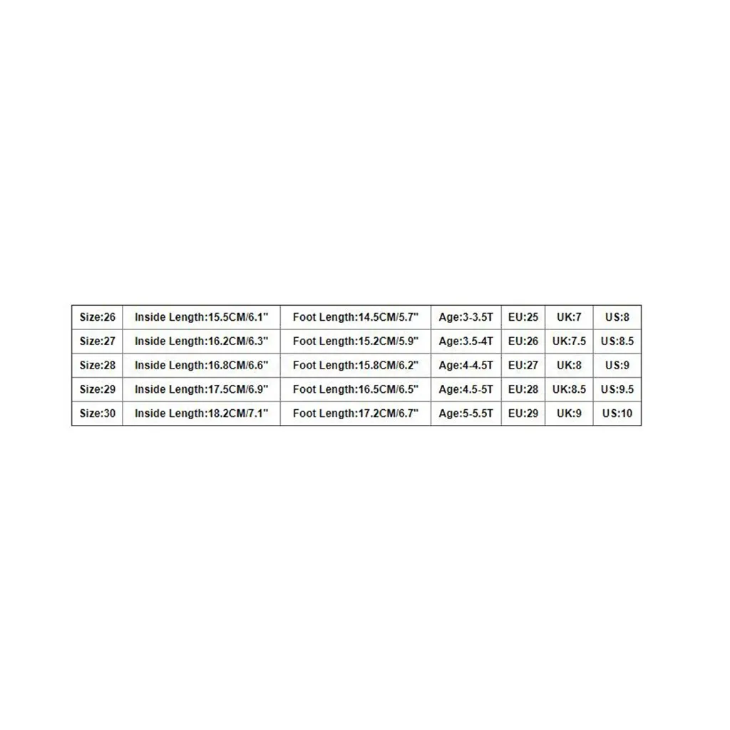 Размер Внутренняя длина Длина стопы Возраст ЕС Великобритания Свяжитесь с нами 26 15,5 см/6,1" 14,5 см/5,7" 3-3,5 T 25 7 8 27 16,2 см/6,3" 15,2 см/5,9" 3,5-4 T 26 7,5 8,5 28 16,8 см/6,6" 15,8 см/6,2" 4-4,5 T 27 8 9 29 17,5 см/6,9" 16,5 см/6,5" 4,5-5 T 28 8,5 9,5 30 18,2 см/7,1" 17,2 см/6,7" 5-5,5 T 29 9 10 Размер: 26 Внутренняя длина: 15,5 см/6,1" Длина стопы: 14,5 см/5,7" Возраст: 3-3,5 T ЕС: 25 UK: 7 Свяжитесь с нами: 8 Размеры: 27 Внутренняя длина: 16,2 см/6,3" Длина стопы: 15,2 см/5,9" Возраст: размер на 3,5-4 T ЕС: 26 Великобритания: 7,5 Свяжитесь с нами: 8,5 Размер: 28 Внутренняя длина: 16,8 см/6,6" Длина стопы: 15,8 см/6,2" Возраст: размер на 4-4,5 T ЕС: 27 UK: 8 Свяжитесь с нами: 9 Размеры: 29 Внутренняя длина: 17,5 см/6,9" Длина стопы: 16,5 см/6,5" Возраст: размер на 4,5-5 T ЕС: 28 Великобритания: 8,5 Свяжитесь с нами: 9,5 Размеры: 30 Внутренняя длина: 18,2 см/7,1" Длина стопы: 17,2 см/6,7" Возраст: 5-5,5 T ЕС: 29 UK: 9 Свяжитесь с нами: 10