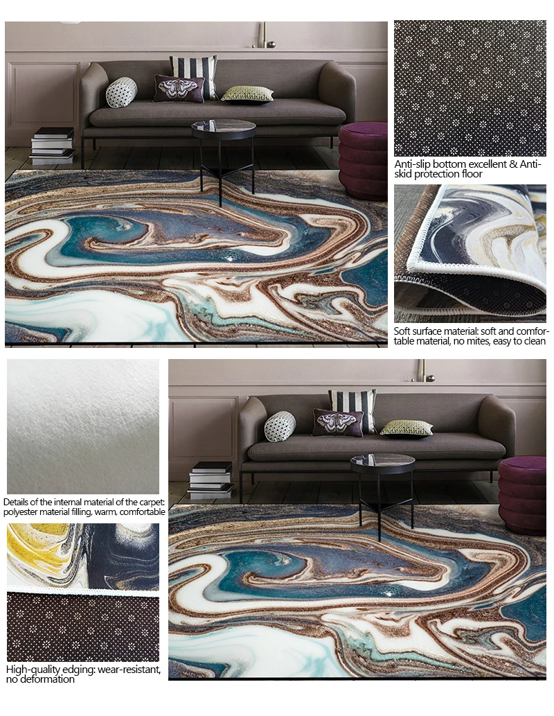 (1) мягкие и удобные, не скользят, не выцветают (2) в нижней части пластиковой ткани, износостойкая и прочная (3) экологически чистая печать и окрашивание, без вредных веществ. (4) ковер, который можно сложить для хранения.