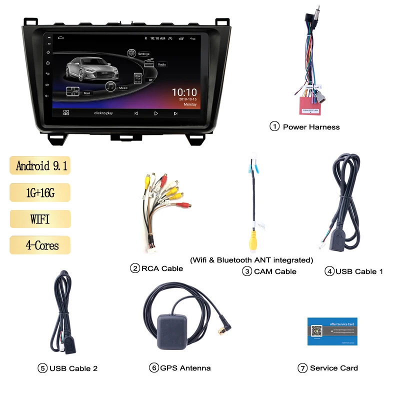 Android 9 1 2 + 32G Универсальное автомобильное радио gps навигация Bluetooth 10 ''сенсорный