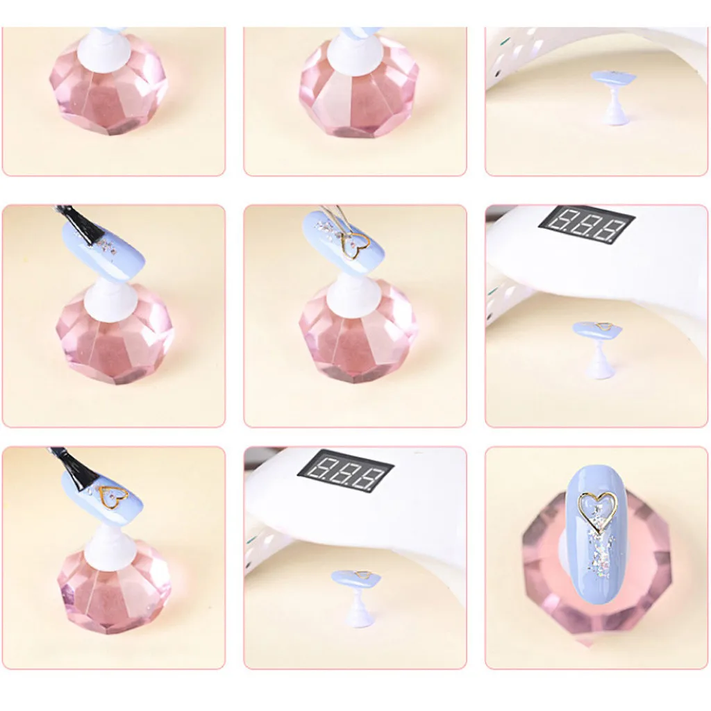 Вы можете использовать ногти или накладные ногти. Кисть для ногтей на основе геля на ногтях, используйте акриловое перо для касания нескольких ромбовидная блестящая ручка и поместите перо, чтобы нажать на гвоздь