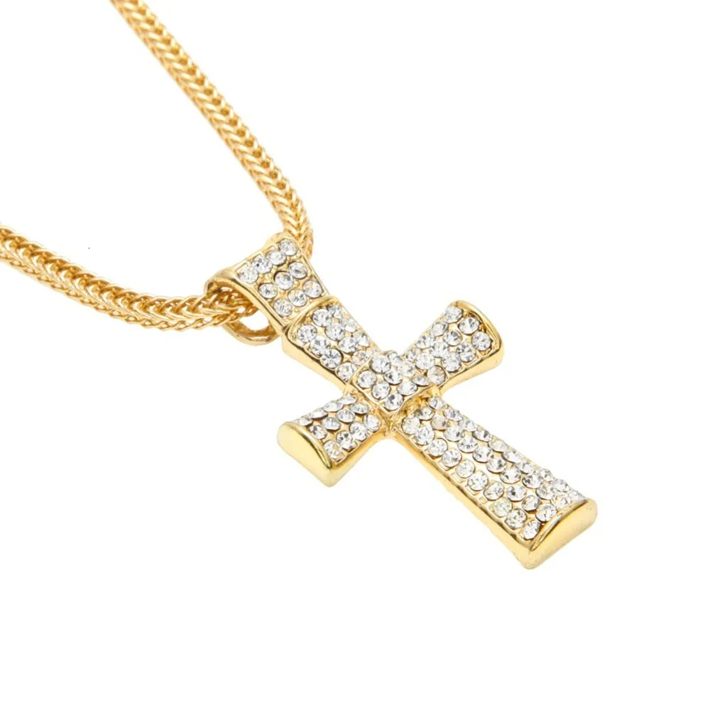 TBTK Золотая вакуумная подвеска с крестиком, украшенная блестящими стразами, подвеска со льдом, Трендовое классическое ювелирное изделие в ретро стиле для мужчин