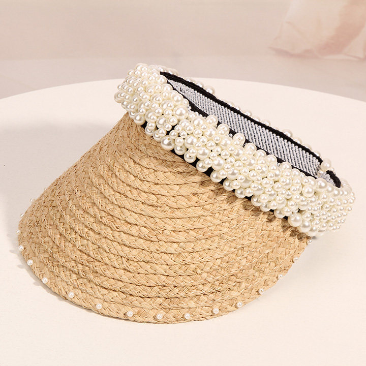 2019 брендовая жемчужная бусина повязка на голову шляпа женская соломенные из пальмового волокна Козырек Кепка s Для Девочек Пляжные Шляпы Модная кепка женская летняя соломенная шляпа от солнца