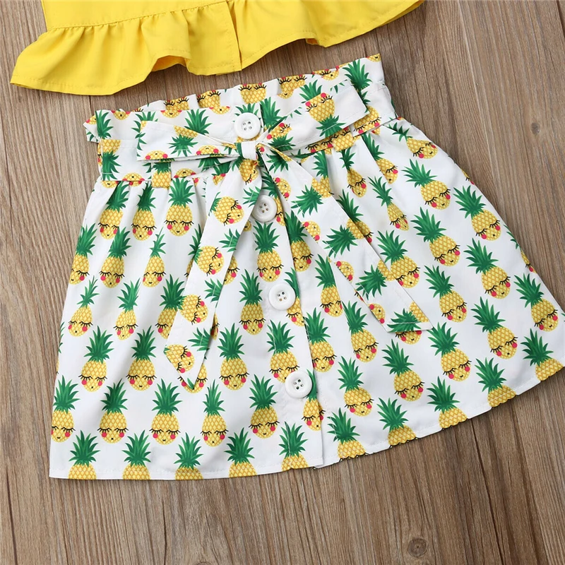 Летняя одежда для девочек из 2 предметов, укороченный топ без рукавов для новорожденных девочек, юбки с принтом ананаса и бантом, одежда для детей, 2019