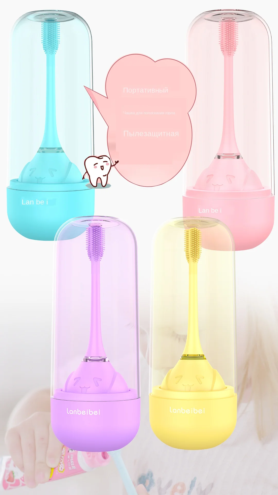 Прозрачная крышка может использоваться в качестве чашки для полоскания. Высота 17,3 см, как и у мобильного телефона, очень легко носить с собой.