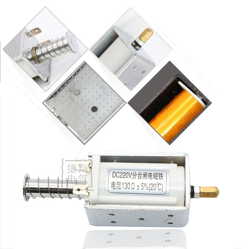 Принцип работы электромагнита: железный сердечник толкает нагрузку, и мощность сбрасывается весной (обратите внимание, что пружина мягкая и может только сбросить Железный сердечник)Гайка толкателя удобна для фиксации объекта, а Электромагнит работает ударной силой. Сила инерционного удара огромная. DC12V: постоянное напряжение DC12V ток 8ADC24V: постоянное напряжение DC24V ток 8A Ход ≤ 34 ммСила инерционного удара: более 2 кгНапряжение: DC12V DC24V DC110V DC220VОбратите внимание на привод в качестве устройства автоматизации. Поскольку ток большой, одиночный цикл не может быть активирован в течение длительного времени, что подходит для работы точечного типа. Лучшее время работы в течение 2 секунд! Ультра-Длинный источник питания похож на ручную катушку короткого замыкания, которая вызывает резкое повышение температуры электромагнита. Если температура слишком высокая, это повлияет на срок службы электромагнита. VS1 комбинированная открывающая катушка VS1 комбинированный открывающий Электромагнит Железный сердечник этого продукта сотрудничает с магнитной направляющей системой в работе. В основном оснащен вакуумным выключателем серии ZN63 (VS1), обычным напряжением постоянного тока DC220V, 131Ω, специальный может быть настроен. Всасывающая катушка не должна превышать 2000 м на высоте, верхний предел температуры окружающего воздуха не превышает + 40 °C, нижний предел температуры окружающего воздуха не ниже-5 °C, а максимальная относительная влажность окружающего воздуха составляет не более 90%; В среде, не подверженной взрыву, нет газов и пыли (включая электрическую пыль) в среде, которые достаточно для коррозии металлов и уничтожения изоляции. Другой: CTB, VK, 3AV3, ZN, CT21, CT23, CT19 и другие электромагниты. Примечание: напряжение, Ом и размеры установки могут быть настроены по мере необходимости.