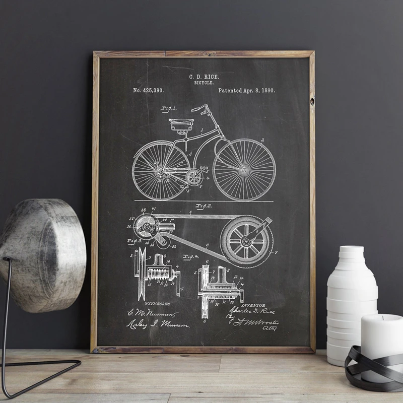 Запатентованные принты для велосипеда, художественные работы на велосипеде, настенная живопись на холсте, постеры, Декор для дома, декор для комнаты, Blueprint, Подарок, Идея для украшения стен