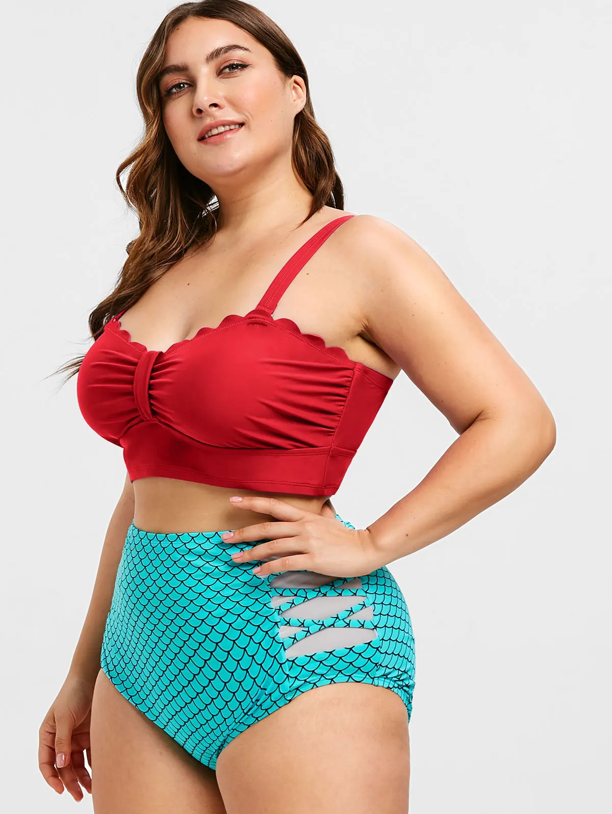 Wipalo/Модные женские Scalloped весы с принтом, сетчатая панель, плюс размер, купальный костюм, контрастный Спагетти ремень, Повседневная летняя пляжная одежда
