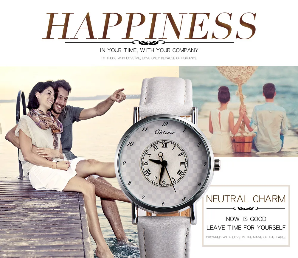 Ретро дизайн кожаный ремешок Аналоговый сплав кварцевые наручные часы