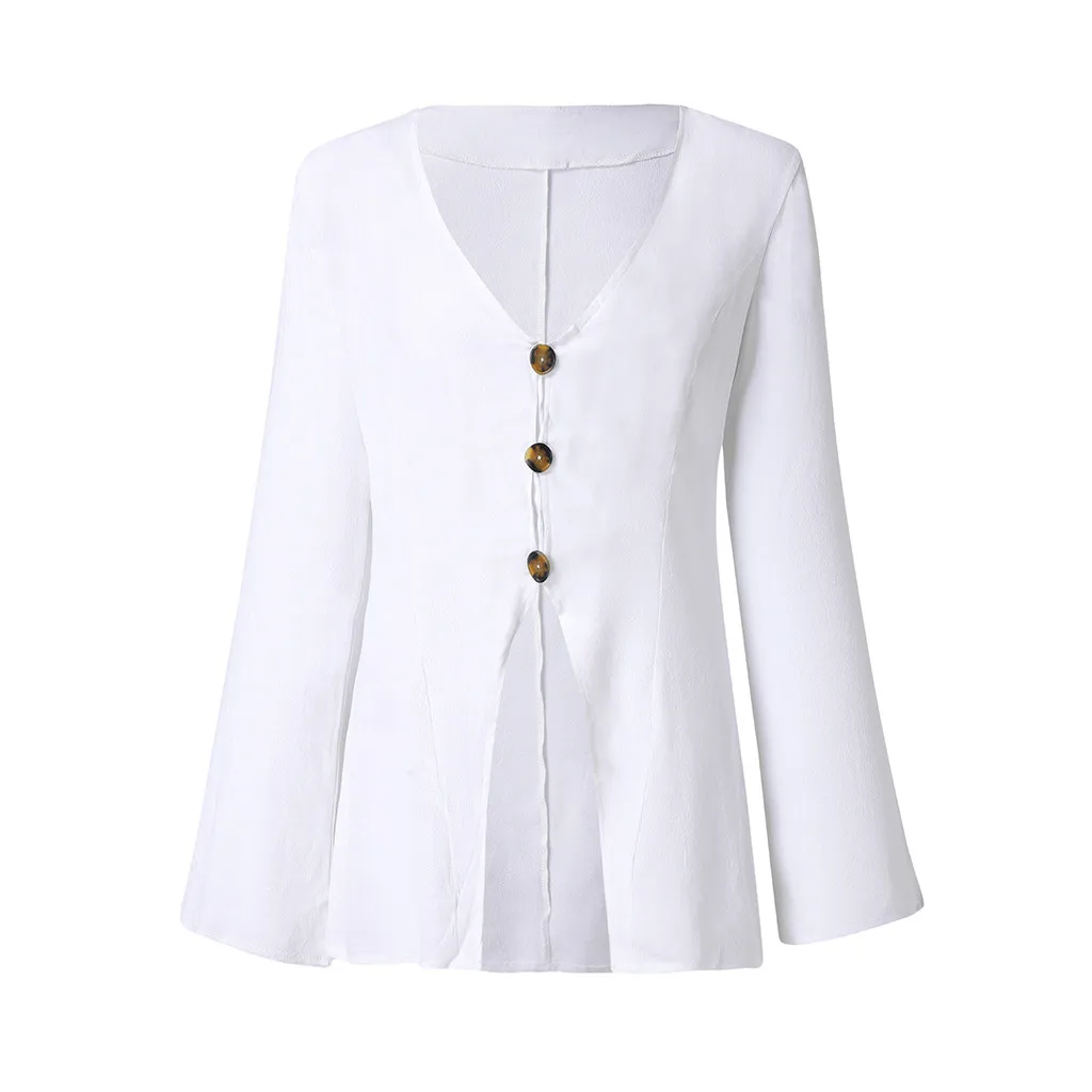 Женская мода винтажные, с длинными рукавами Повседневная Футболка Solid Button пляжная блузка