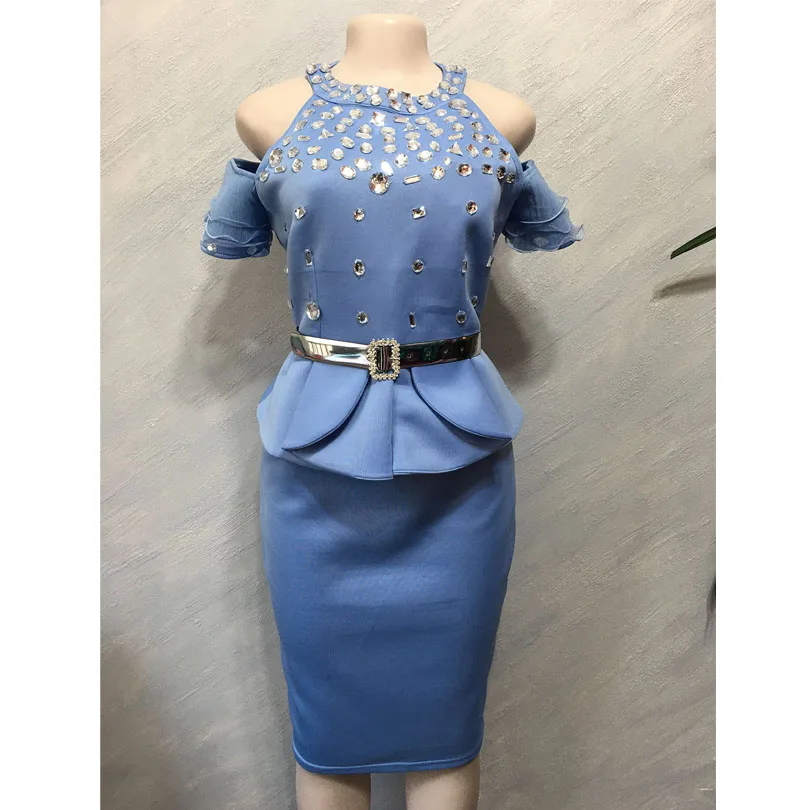 Комплект из 2 предметов; Комплект с платьем в африканском стиле для женщин; Модный костюм с круглым воротником и открытыми плечами; Топ с оборками и юбка; Комплект с юбкойUS $34,50 /