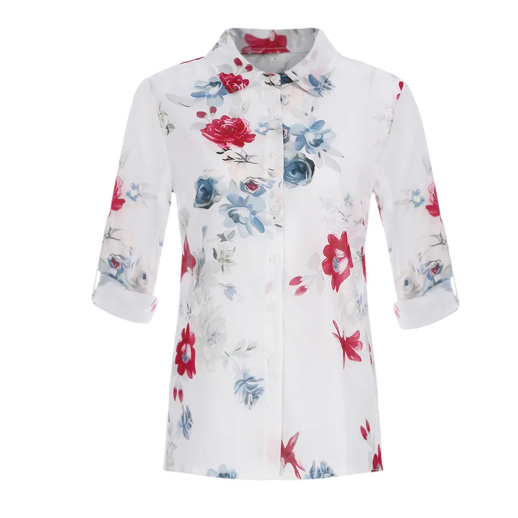 Женская Свободная блузка с v-образным вырезом и принтом на пуговицах, пуловеры, топы, рубашки, большие размеры