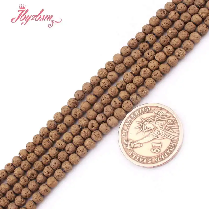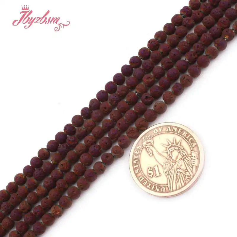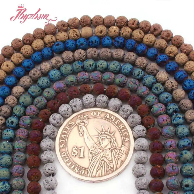 4/6/8/10mМ круглые бусины Лава Рок покрытые металлическим покрытием натуральный камень бусины для ювелирных изделий DIY ожерелье браслет 15 "Бесплатная доставка