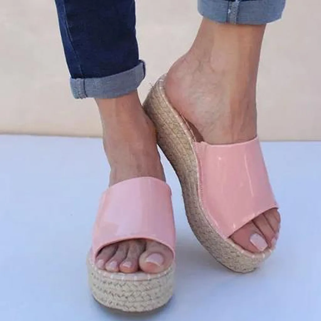 Модные женские туфли на танкетке; туфли с открытым носком на толстой подошве; ременные сандалии; пляжные сандалии
