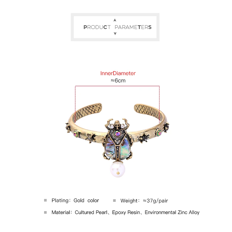 Винтажный этнический открытый браслет для женщин, модные ювелирные изделия ретро, золотой цвет, имитация жемчужное животное, браслет, аксессуары |