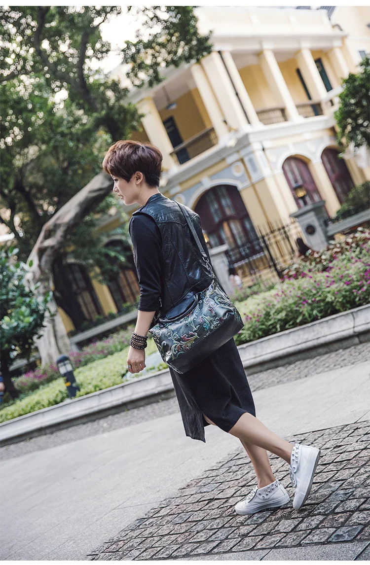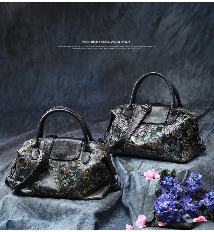 Сумка для девушек кожаная винтажная сумка на молнии с цветами плечо отдыха