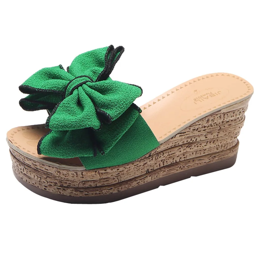 Женские модные однотонные Туфли-Цвет с бантом Туфли на танкетке Босоножки с открытым носком с красивым принтом; Обувь с каблуком «рюмочка»; Туфли