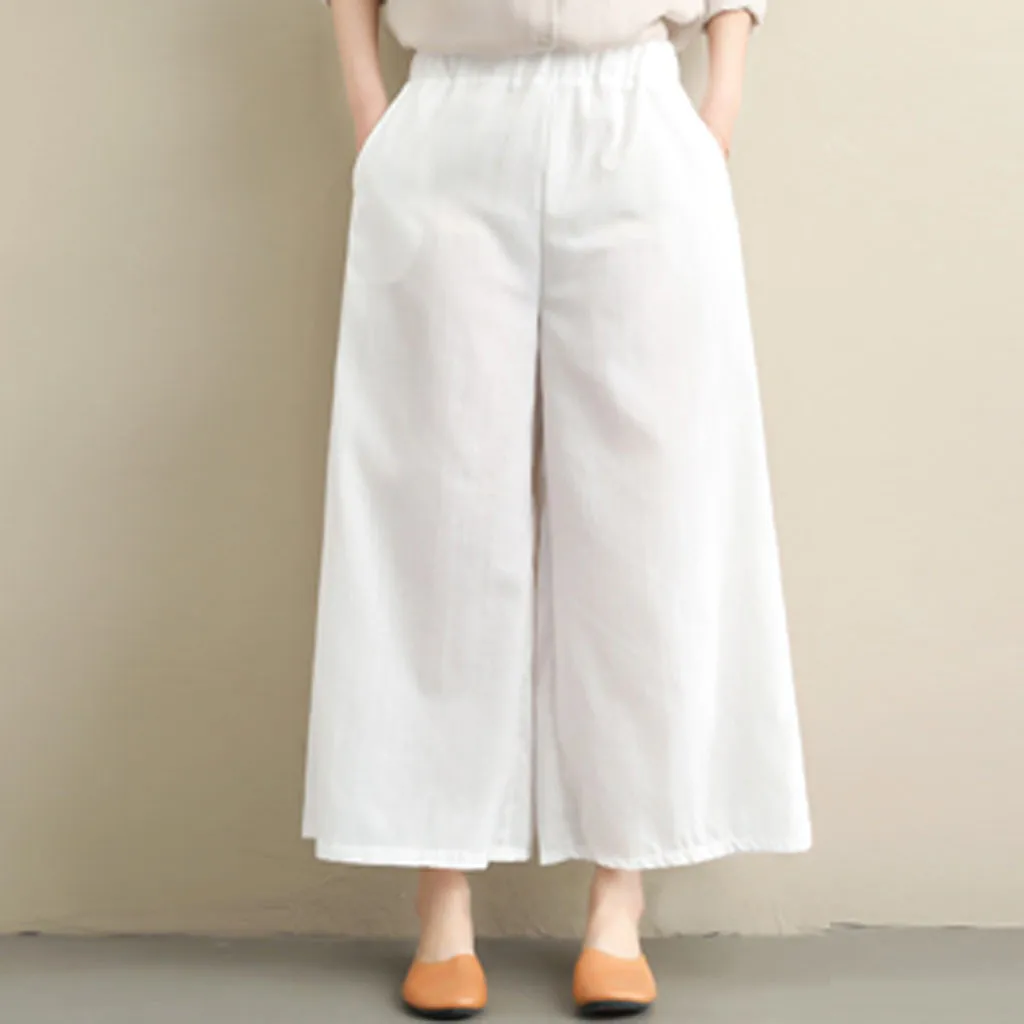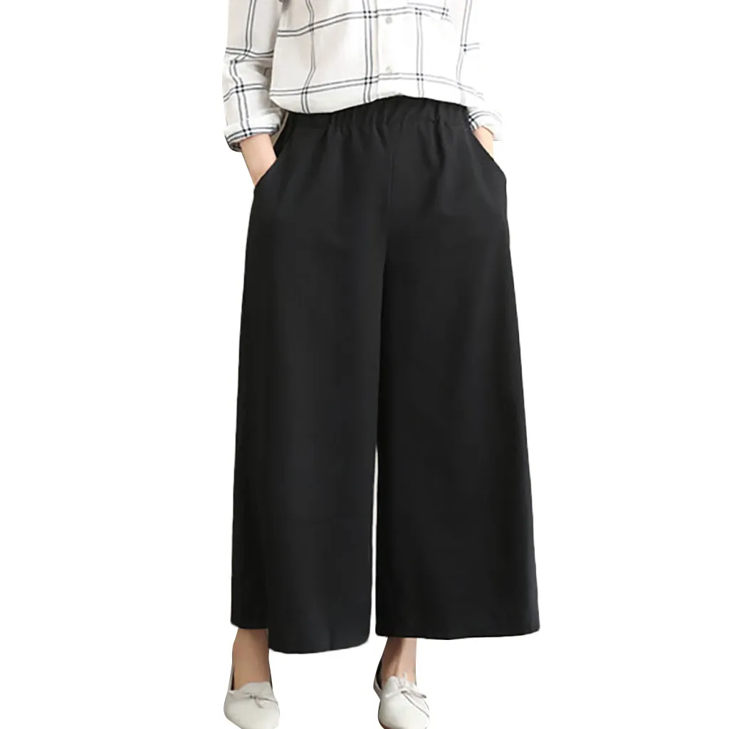 Женские однотонные свободные хлопковые и льняные широкие брюки больших размеров