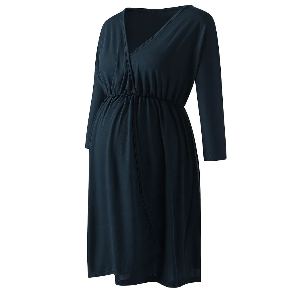 Женская мода для беременных с v-образным вырезом пятиточечный рукав платье для отдыха