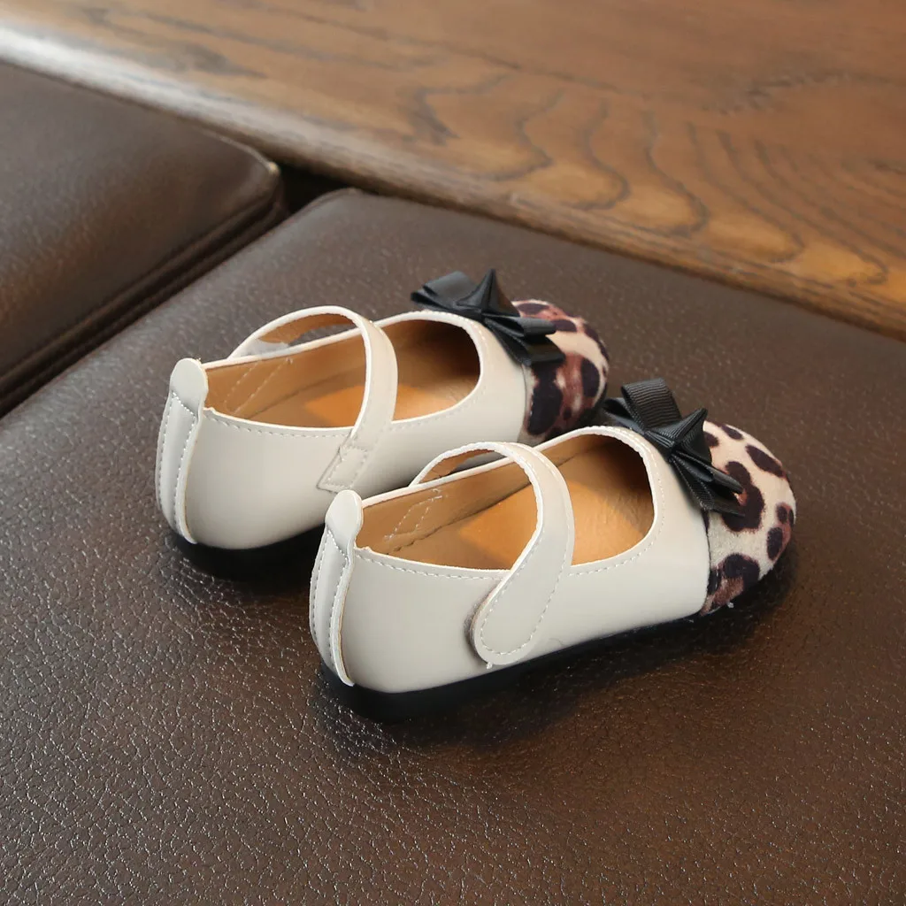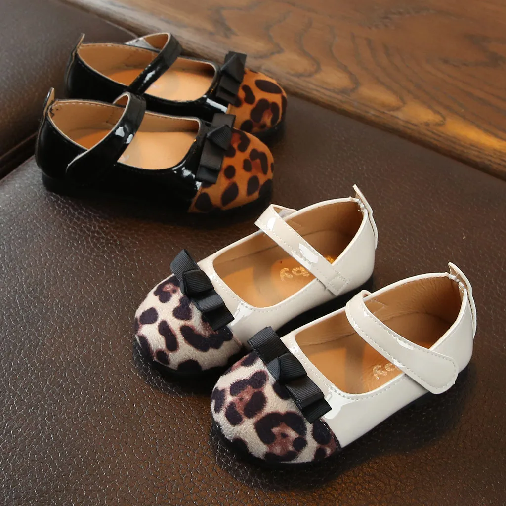 Детские леопардовые туфли принцессы с бантом для маленьких девочек