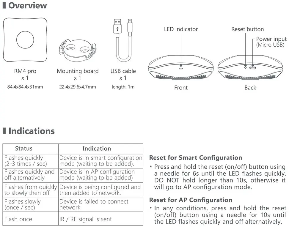 Совместимость: Поддержка ИК-устройств (38 кГц), таких как телевизор, приставка для настройки, A/C, персональный видеорегистратор, DVD, приемник и RF (433 МГц) управляемые устройства, такие как штора/штора, мотор и выключатель на светильник. Не работает с Bluetooth