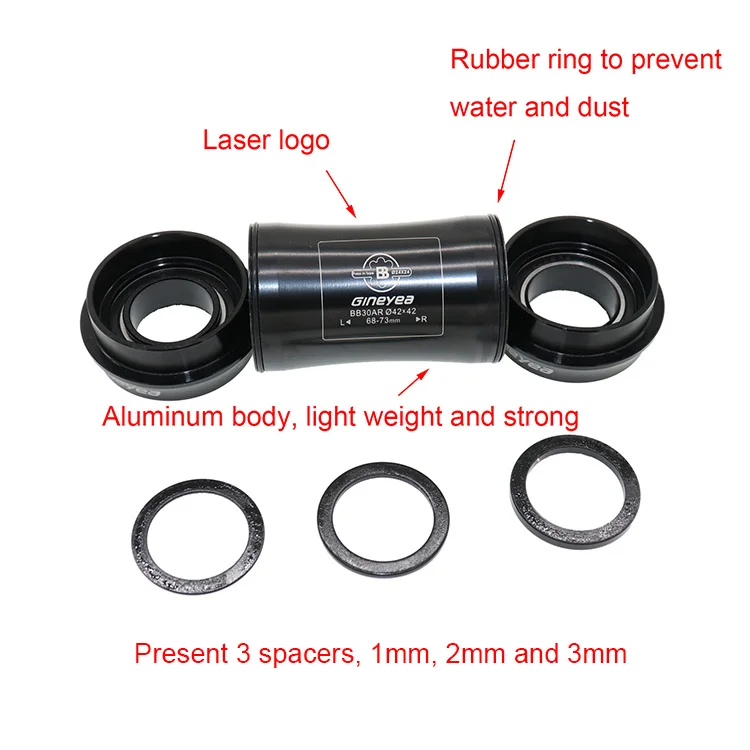 Бренд: Gineyea (OEM поставщик производства для гиганта, Мериды) No.1 quanlity гарнитура и нижний кронштейн бренда в Китае. Материалы: алюминиевый сплав Стальной герметичный подшипник Вес: только 115 г Характеристики: BB30: внутренний диаметр корпуса BB 42 мм, ширина 68-73 мм PF30: внутренний диаметр корпуса BB 46 мм, ширина 68-73 мм BB86/BB92: внутренний диаметр корпуса BB 41 мм, ширина 86-92 мм B79: внутренний диаметр корпуса BB 46 мм, ширина 79-83 мм BB386: внутренний диаметр корпуса BB 46 мм, ширина 86-92 мм Диаметр шпинделя Shiman.o: 24-24 мм Sra.m диаметр шпинделя: одна сторона 24 мм, другая сторона 22 мм Поставляется с 3 разделителями толщиной 1 мм, 2 мм и 3 мм. Подходит для разной ширины корпуса BB. 3 шага на выбор нижнего кронштейна: 1. Знать внутренний диаметр корпуса BB, обычно 41 мм 42 мм 46 мм 2. Знать ширину корпуса BB, 68-92 мм 3. Знать диаметр шпинделя коленчатого вала: Shiman.o 24-24 мм, Sram 22-24 мм, FS---A 19-19 мм, другие 30 мм.
