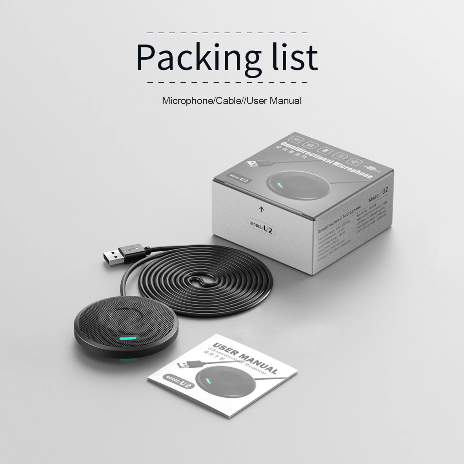 ♫Портативная конструкция: компактный и портативный дизайн, это примерно половина вашей ладони, поэтому она остается идеально на столе конференц-зала, не занимая слишком много места. Просто положите микрофон для Конференции в карман или портфель.