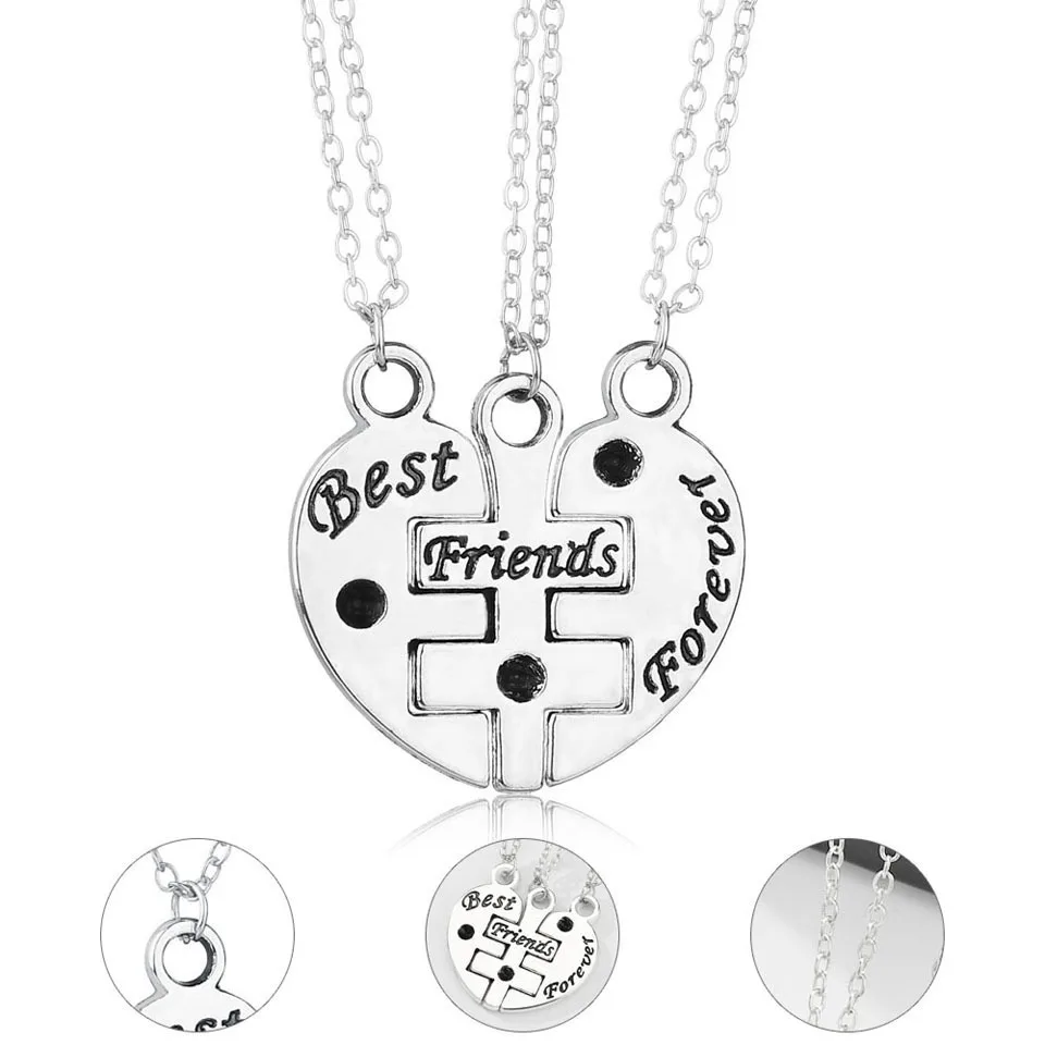 Драгоценное сердце дружбы кулон ожерелье для женщин три съемные ожерелья лучшие друзья навсегда чокер серебряная цепочка