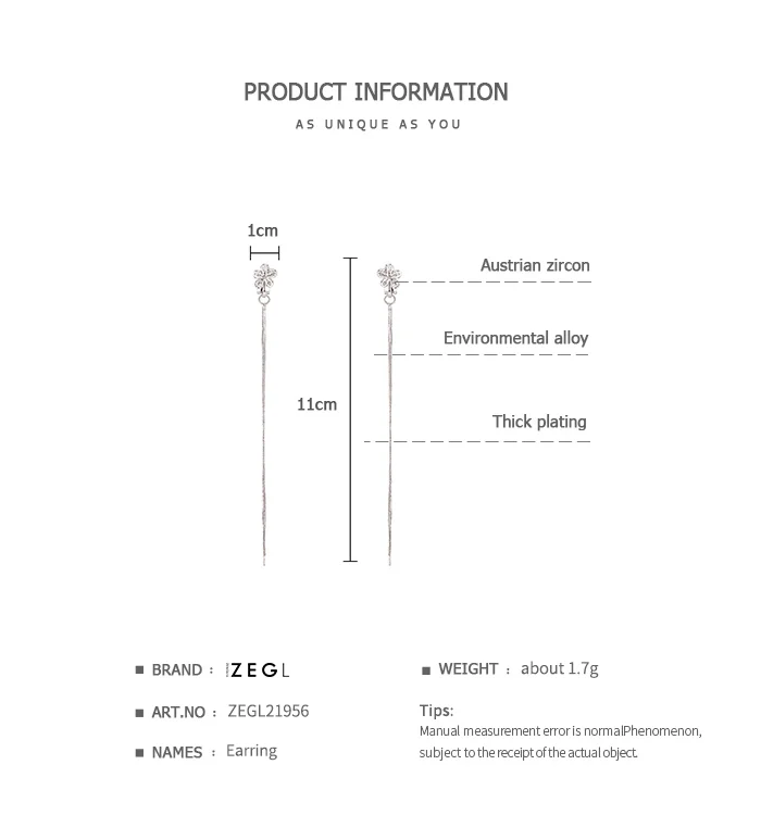 Бренд: ZEGL Вес: 1,7 г Арт. Номер: ZEGL21956 названия: Серьги Материал: экологический сплав Ошибка измерения вручную является нормальным явлением, При условии получения фактического объекта.