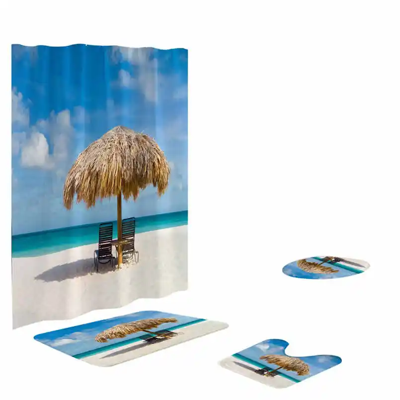 4 шт. Нескользящие унитаз полиэстер покрытие коврик набор ванная комната занавеска для душа