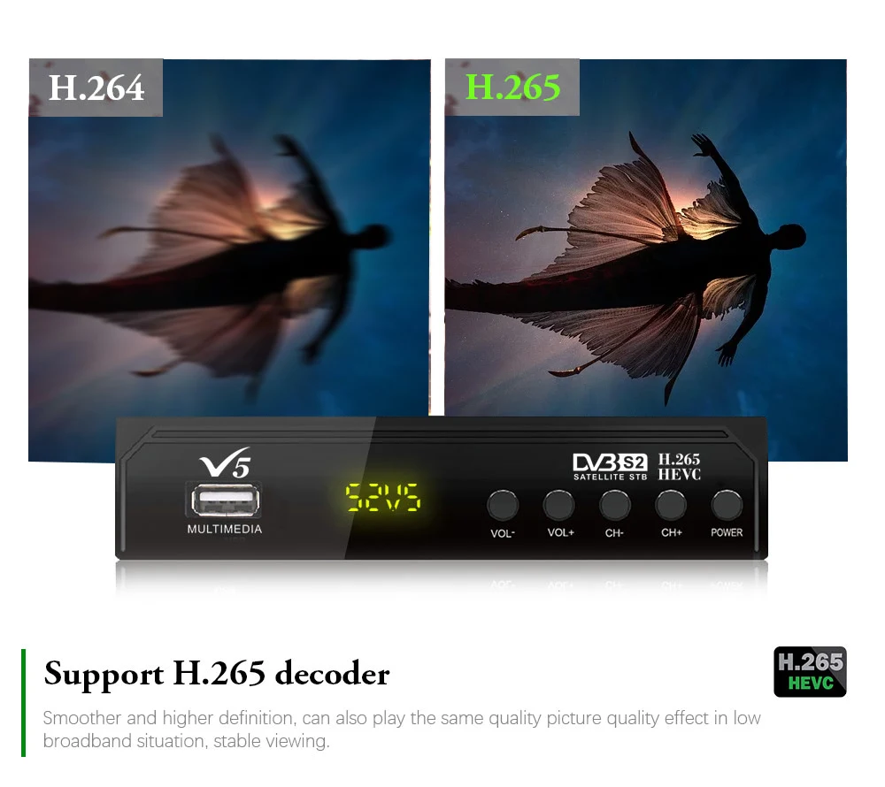 Спутник Vmade S2 V5ТВ приемник + USB WIFIЕвропейский декодерПоддержка H.265/HEVCКлюч IKS Biss на YouTubeТВ-тюнер DVB S2 телеприставка