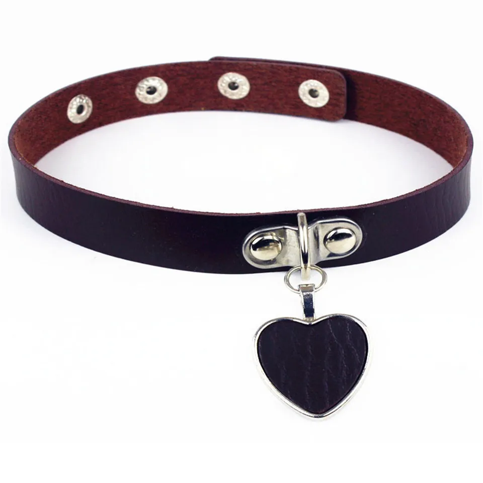 Женское колье чокер из ПУ кожи черное ожерелье с сердцем в готическом