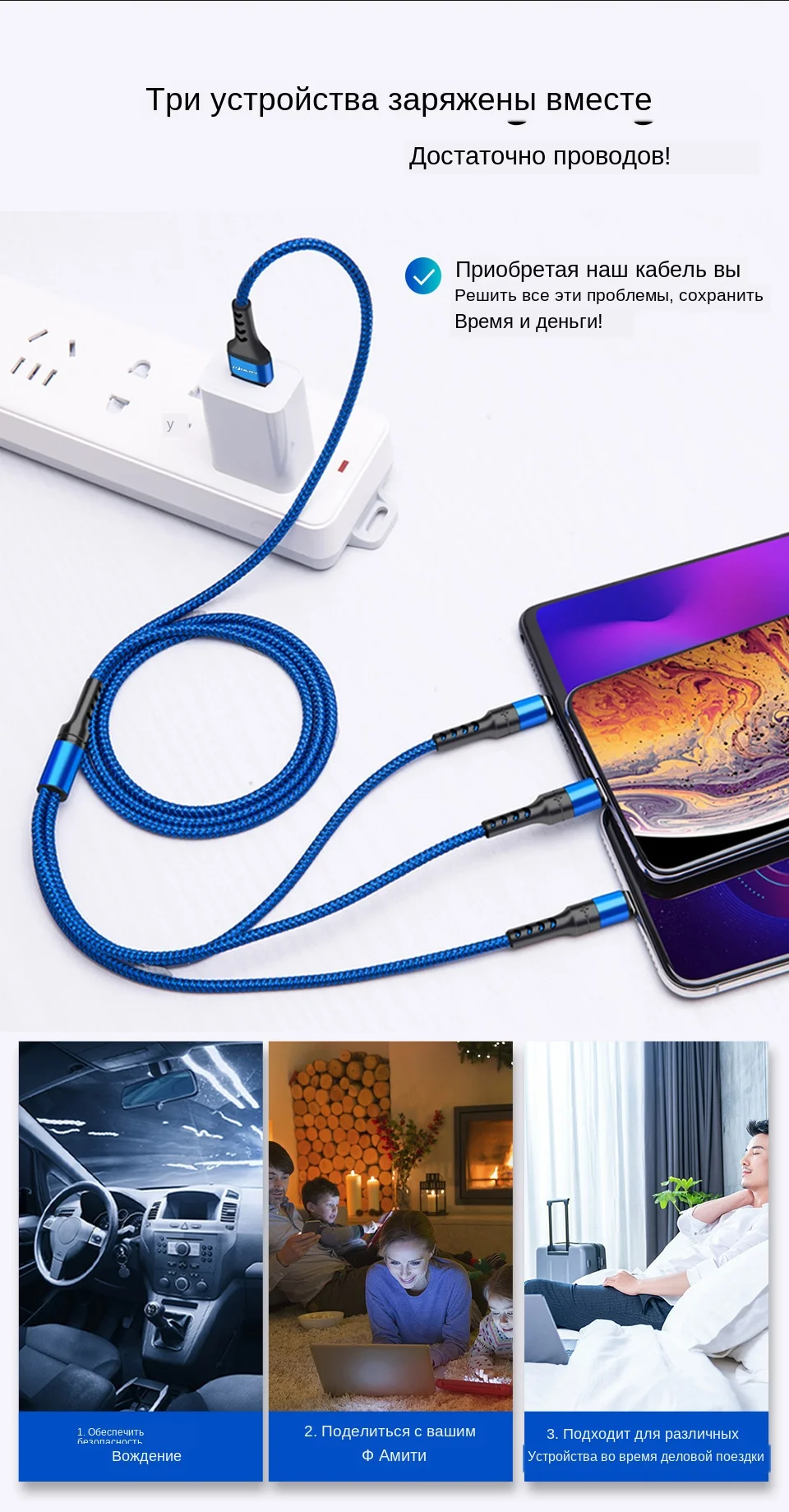Примечание: USB-кабель 3 в 1 предназначен только для зарядки, передача данных отсутствует.