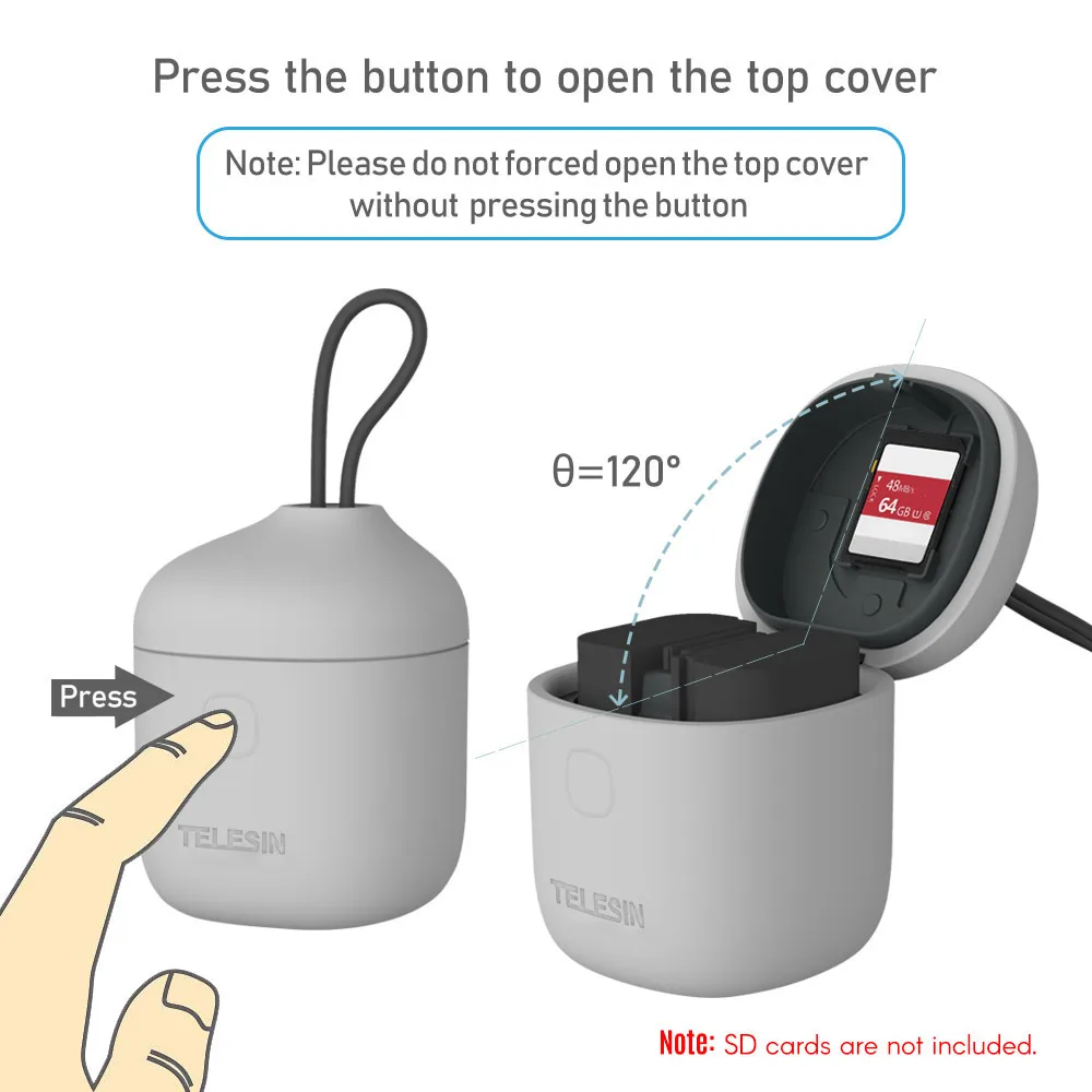 3 в 1 Многофункциональный:В качестве полезного зарядного устройства можно заряжать 2 батареи одновременно; Также как портативный чехол для хранения батареи, чтобы защитить батареи от сырости и ударов; С функцией картридера, можно напрямую подключить к компьютеру через usb-кабель, так удобно.
